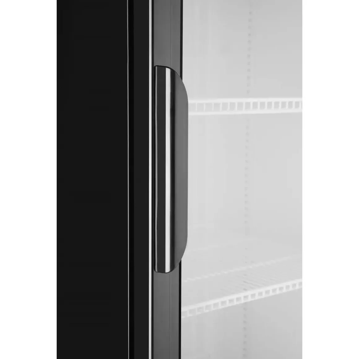 Gepoedercoate zwarte stalen behuizing. Deze uitvoering is vervaardigd uit wit gelakt aluminium. Deze uitvoering is vervaardigd uit kunststof. Voorpaneel van gehard glas. Kan met een sleutel afgesloten worden. Statische koeling met ventilator. Automatisch ontdooien. De koelcompressor bevindt zich onder de kamer. Temperatuurbereik: 2-10 °C. Kamer voorzien van LED-verlichting. Elektromechanische thermostaat bediend met een draaiknop. 4 zwenkwielen, inclusief 2 met remmen. Klimaatklasse: 4. Energieklasse: D.