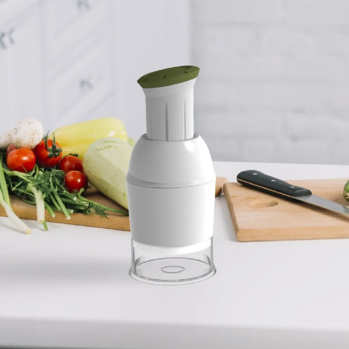 Dit handige hulpmiddel heeft daarnaast een strak design en komt in een witte met groene kleur. De doorsnede van de Biesse hakker is 9,5 centimeter en de tool heeft een hoogte van 22,5 centimeter.