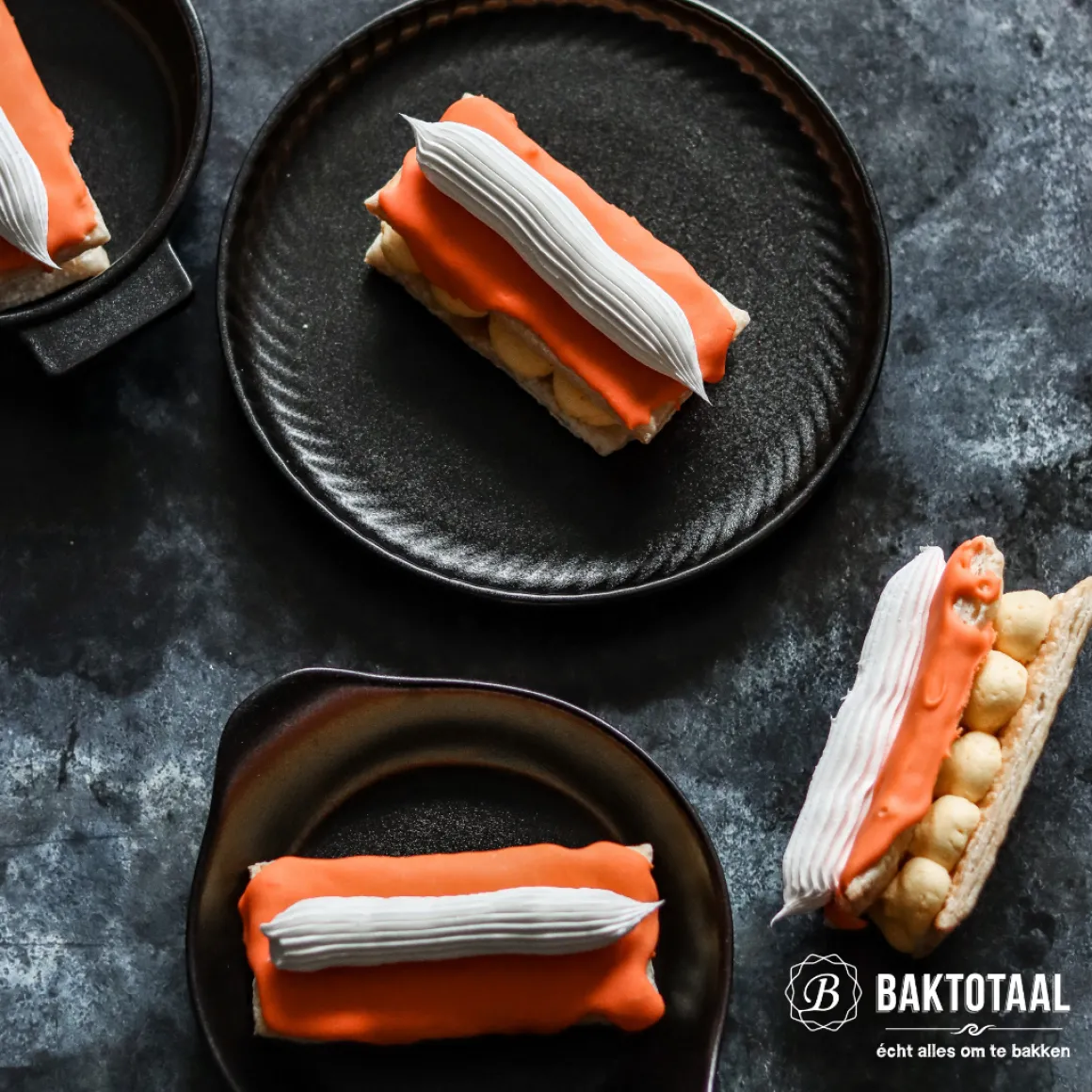 Om precies de kleur te krijgen die jij wilt hebben, is het belangrijk om zuinig te werk te gaan. Het beste kun je met bijvoorbeeld een saté/coctail-prikker een beetje kleurstof gel aan het product toevoegen dat je wilt kleuren. Wil je graag meerdere kleurtjes gebruiken? Dan kun je het beste voor elke kleur een aparte, schone prikker gebruiken. Voeg een klein beetje kleurstof gel aan het product toe, wanneer je deze lichtjes oranje wilt kleuren. Je krijgt dan een beetje een zalmkleur. Wil je juist een wat donkerdere oranje kleur? Voeg dan wat meer kleurstof gel toe. Hoe meer kleurstof gel je aan het product toevoegt, hoe meer oranje het product wordt.