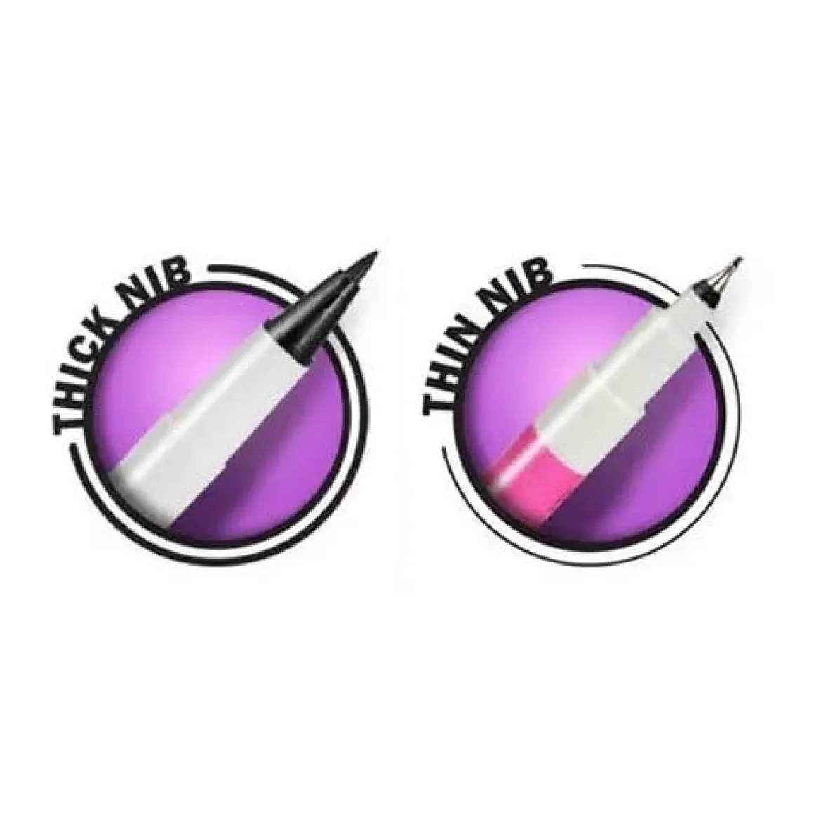 Deze stiften zijn aan twee kanten te gebruiken. Aan de ene kant een dunne stift en de andere kant een dikke stift. Doordat de stift 2-zijdig is kan het gebruikt worden voor zowel het inkleuren van vlakken als voor het aanbrengen van kleine details.