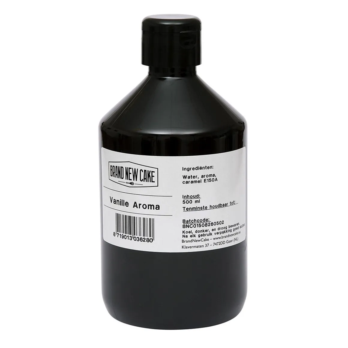 De BrandNewCake Vanille Aroma 500ml komt in een grote verpakking van 500 mililiter. Met de vanille aroma kunnen allerlei lekkernijen op smaak gebracht worden. Heerlijk in gebak, slagroom, beslag, drankjes en nog vele andere producten. Het aroma geeft een vanille geur én smaak.