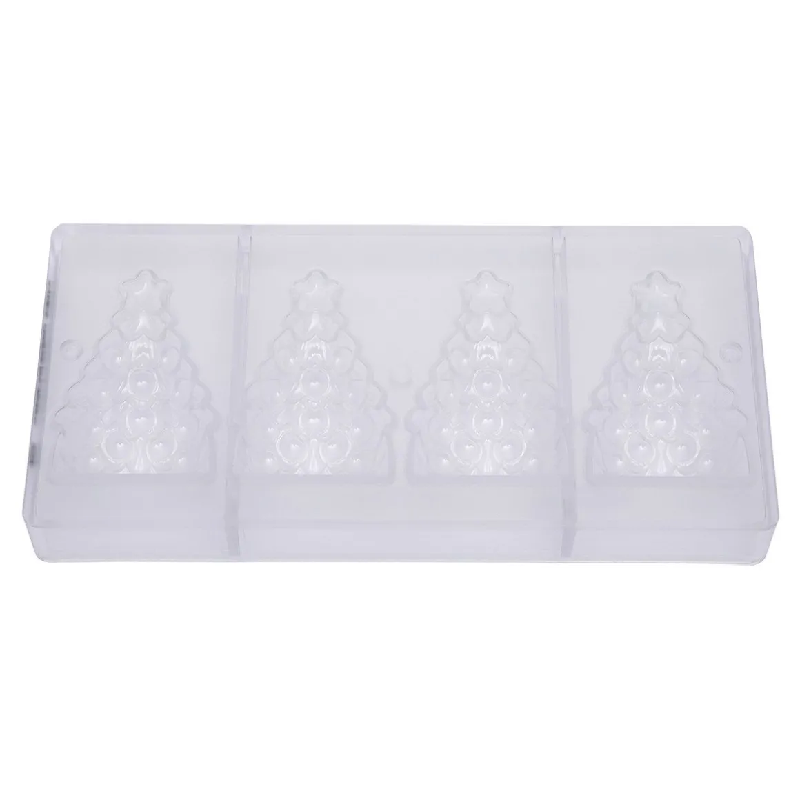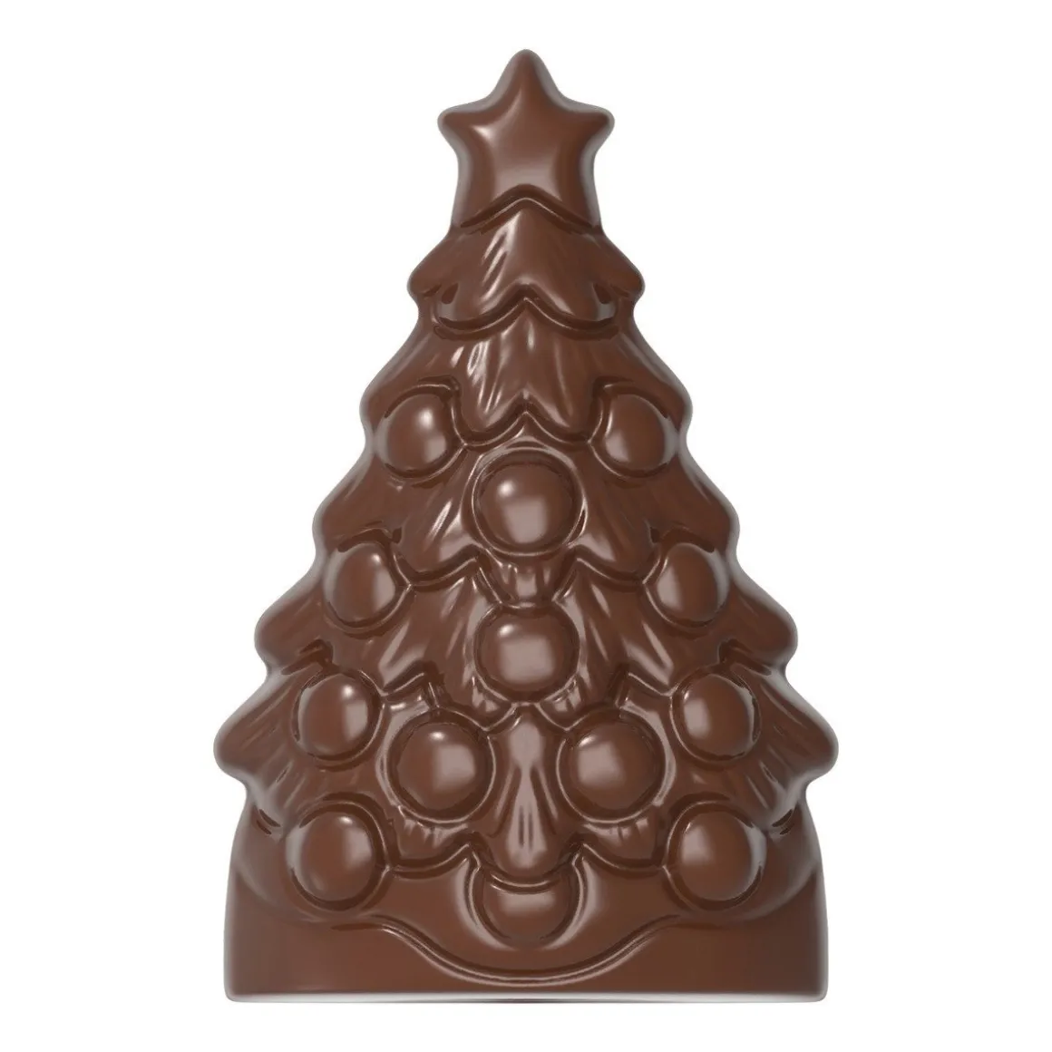 Christmas is coming! Ja, de kerst komt er weer aan, dat wordt heerlijke bakcreaties maken. Maak met deze chocolademal van het merk Chocolate World een prachtige kerstboom met een voor en achterkant. De mold bevat vier halve vormen om in totaal twee prachtige tweedelige chocolade kerstbomen te maken. Is de chocolade voor de kerstboom eenmaal hard dan kun je de “kerstballen” ook nog een leuk kleurtje geven om het geheel helemaal af te maken.