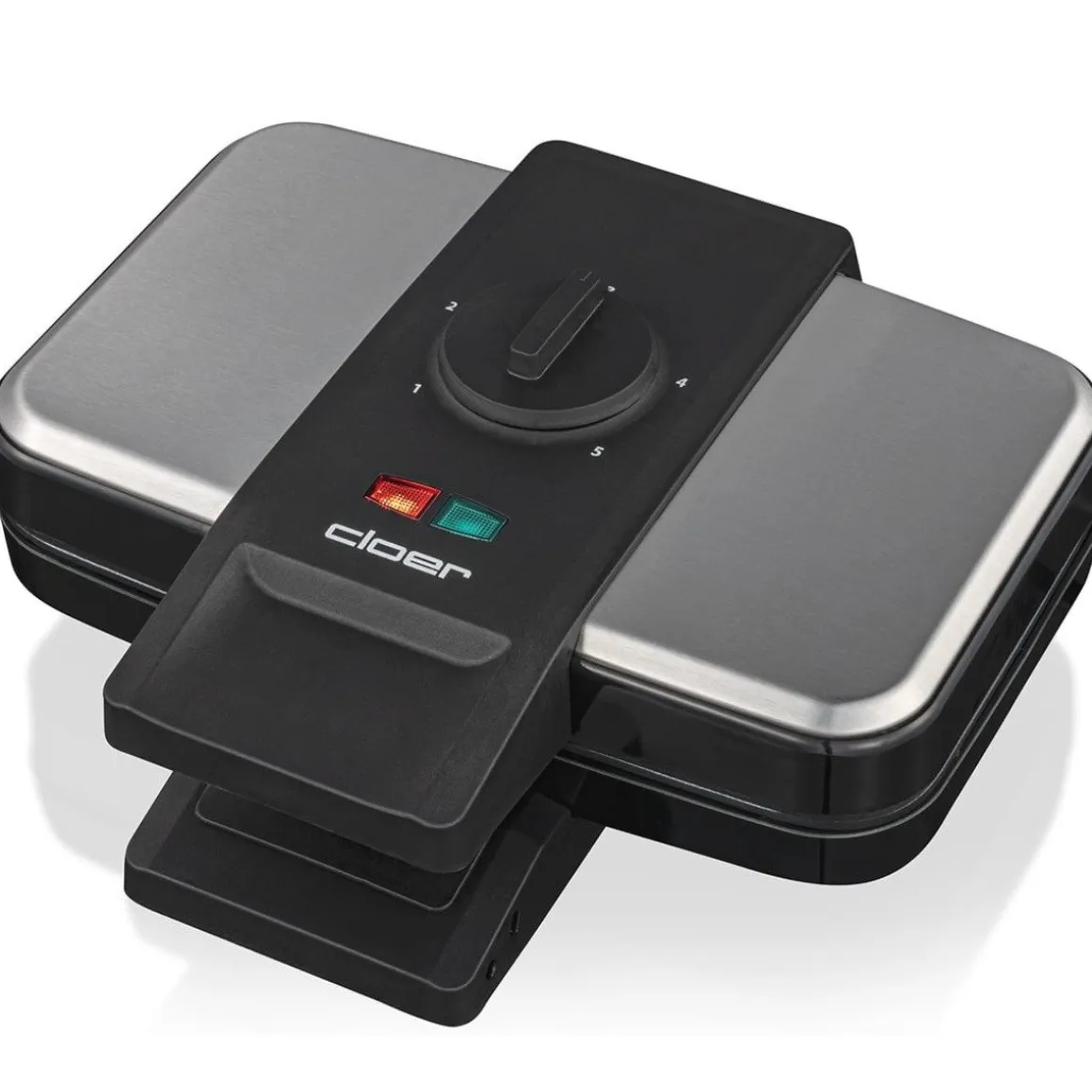 Met de Cloer Wafelijzer Brussels XXL bak je heerlijke en extra grote wafels. Je kunt twee wafels met dit ijzer bakken, die een afmeting van 12,3 bij 12,3 cm per wafel hebben. Bovendien zijn de wafels ook nog eens extra hoog met 2,1 cm. Het wafelijzer heeft een robuust uiterlijk met een behuizing van RVS en elementen van zwaar kunststof.