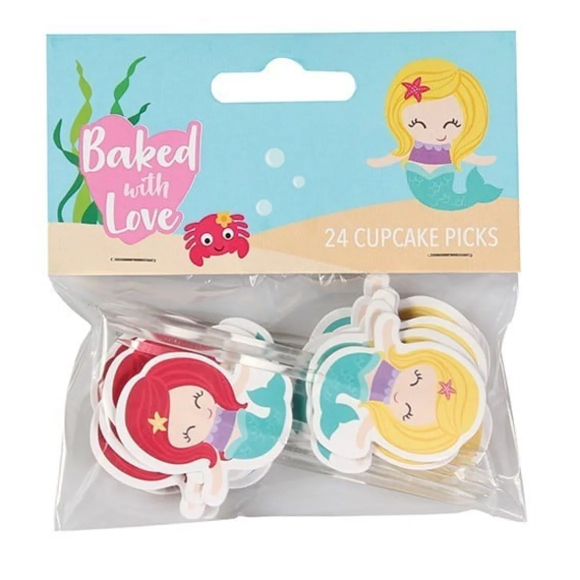 Een feestje met een zeemeermin thema? Deze decoratie prikkers zijn perfect voor het decoreren van (cup)cakes, muffins en taarten. De prikkers hebben twee verschillende zeemeerminnen, één met blond en één met rood haar. Superleuk in combinatie met cupcake cups met een zeemeermin print. Maak de cupcakes helemaal af met boter crème of glazuur en sprinkles in een zeemeermin thema.