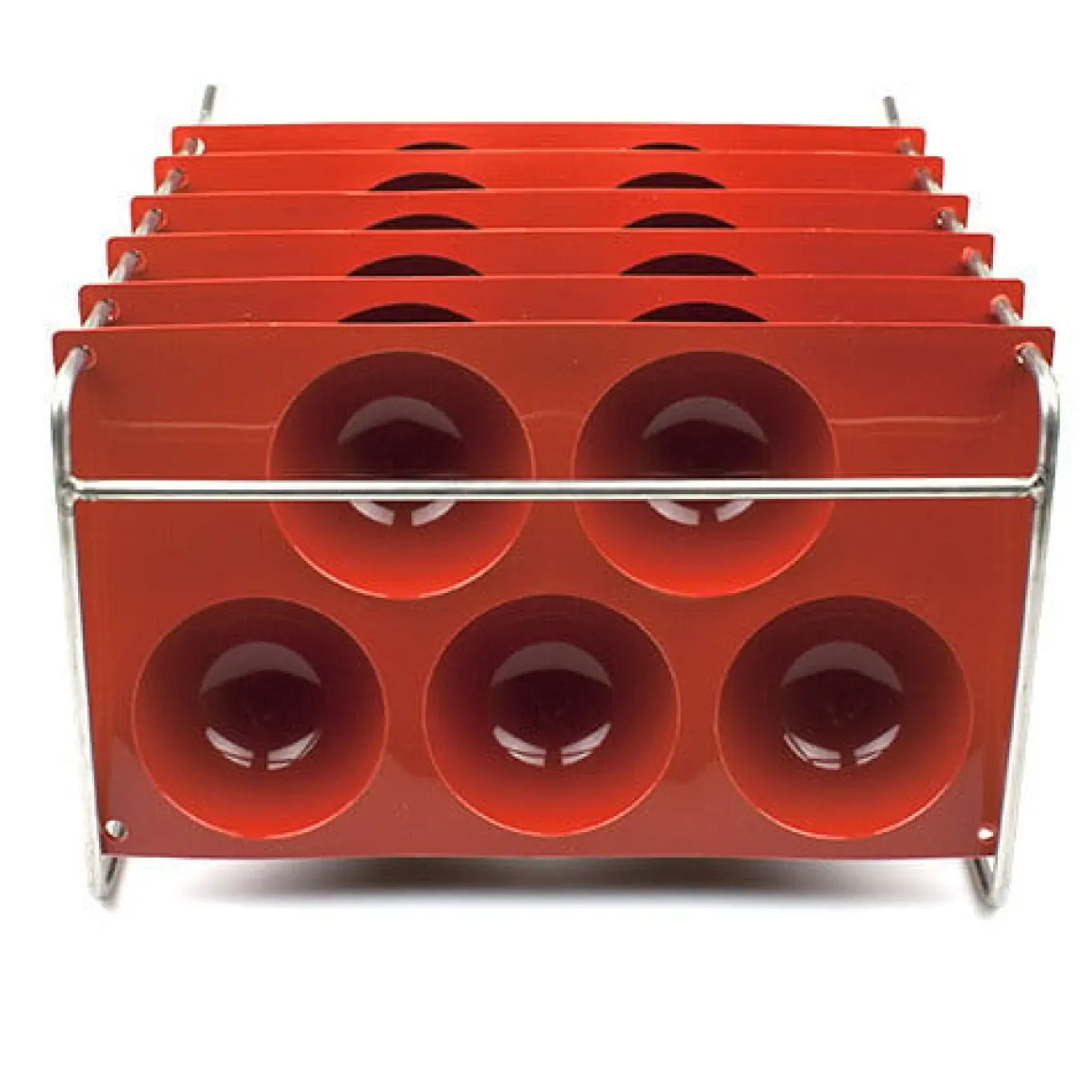 Dit droogrek is gemaakt voor alle siliconen vormen (Siliconflex) waarvan het artikelnummer begint met SF. Je kunt deze herkennen aan de oranje kleur. Deze vormen hebben een afmeting van 20×30 cm en zijn voorzien van gaatjes in de hoeken, zodat ze gemakkelijk opgehangen kunnen worden.