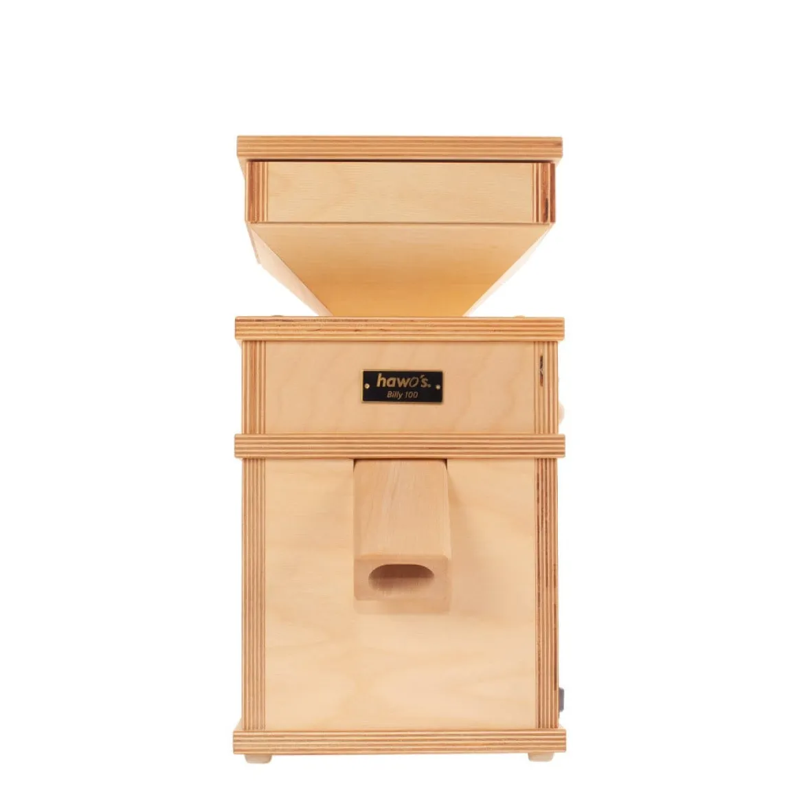 Met de elektrische graanmolen ‘Billy’ vermaal je zelf je graan! Het is gemaakt van berkenmultiplex, dit is dan ook het enige verschil met de Queen (welke gemaakt is van wat steviger beukenhout). Het is een echte klassieker voor iedereen die niet wil besparen op kwaliteit, maar wel op prijs. De behuizing kan grote temperatuurschommelingen in de keuken weerstaan, door de bijzonder stabiele multiplexpanelen met speciale verlijming. De maalkamer voldoet aan de hoogste kwaliteitsnormen door het voedselveilige, hygiënische kunststof.