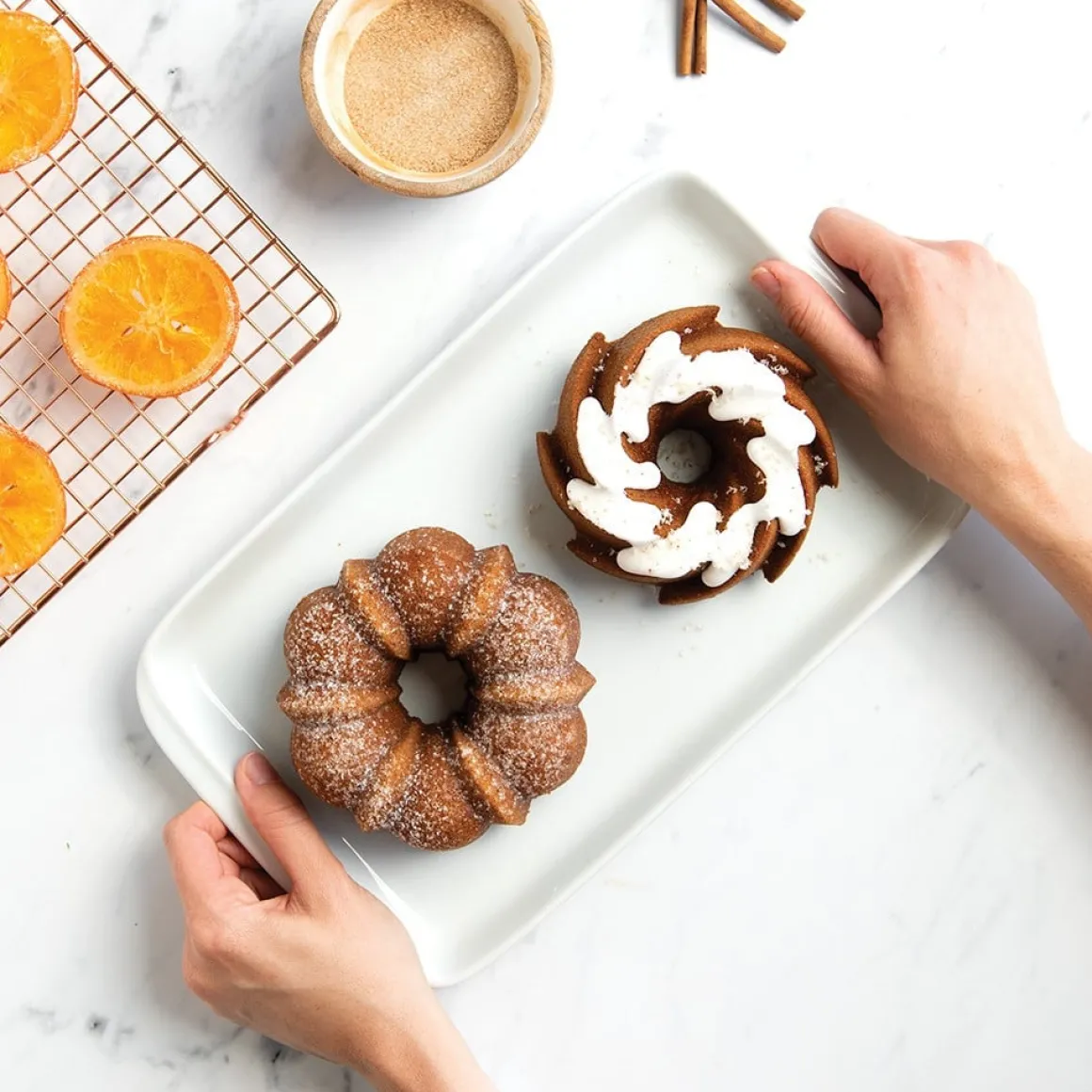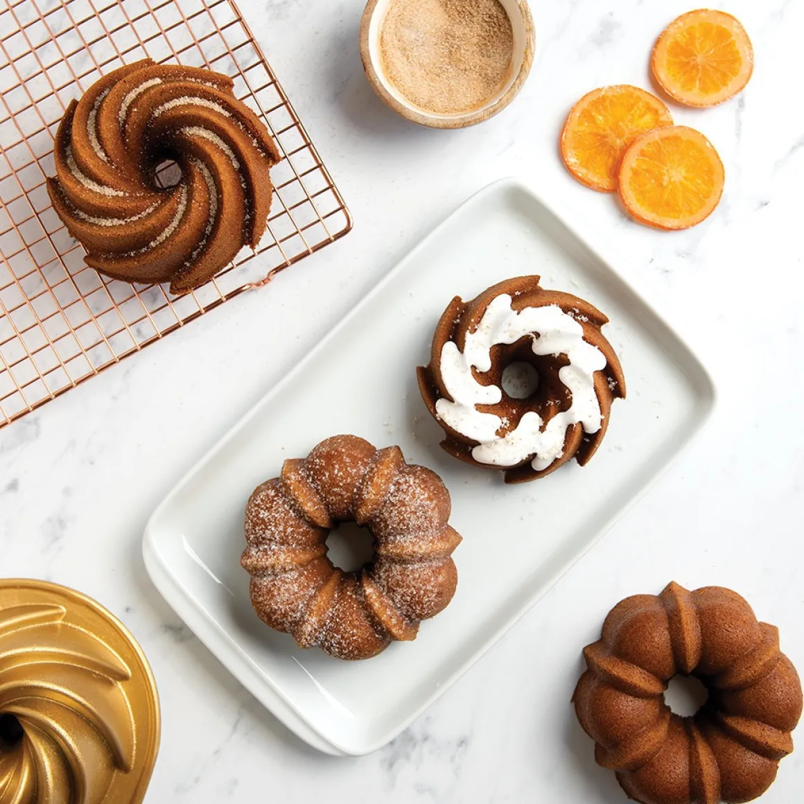 Deze hoogwaardige bakvorm bevat twee iconische Bundt-ontwerpen: de Anniversary Bundt en de Heritage Bundt. Deze klassieke vormen staan wereldwijd bekend om hun tijdloze charme en sierlijke details.