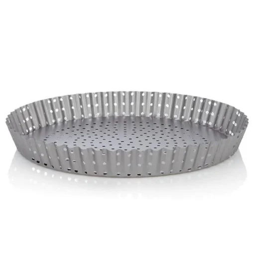 De Patisse Quichevorm Geperforeerd Losse Bodem Silver-Top Ø28cm is een geperforeerde quichevorm. Deze vorm is geschikt voor bakproducten waar het van belang is dat de warmte goed circuleert. Door de losse bodem kan de quiche makkelijk uit de vorm worden gehaald. Deze quichevorm heeft een diameter van 28cm.