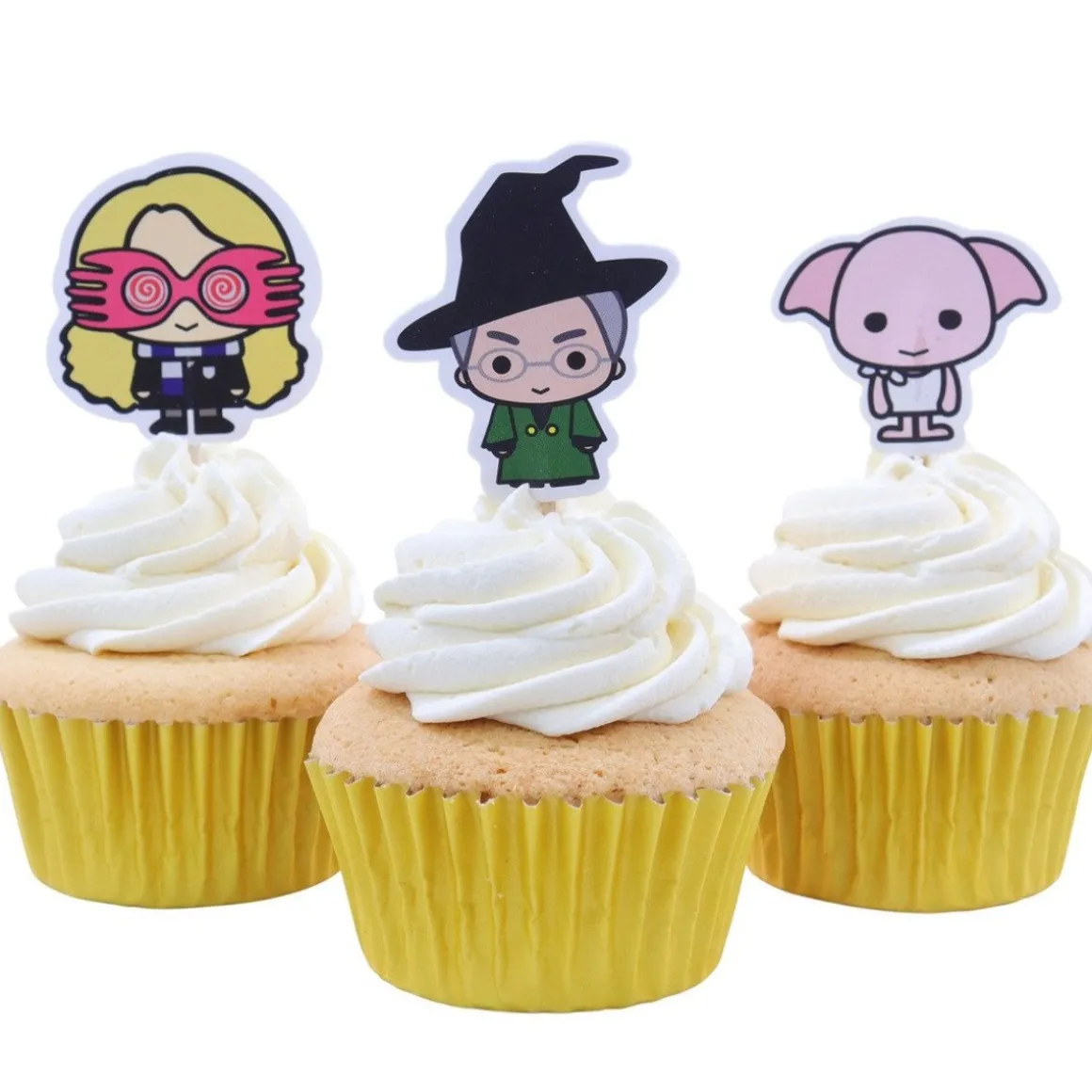 Met de PME Harry Potter Karakters Taartprikkers 15st maak je jouw baksels helemaal af! Ben jij een Harry Potter fan? Dan vind je deze versiersels vast en zeker fantastisch. Deze taartprikkers bestaan namelijk uit verschillende personages uit de Harry Potter serie. De afmetingen van de decoraties zijn 4,5 cm bij 4 cm, dat is exclusief de houten prikker. Inclusief de houten prikker hebben ze een lengte van 10 cm.