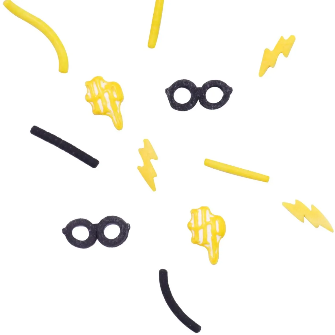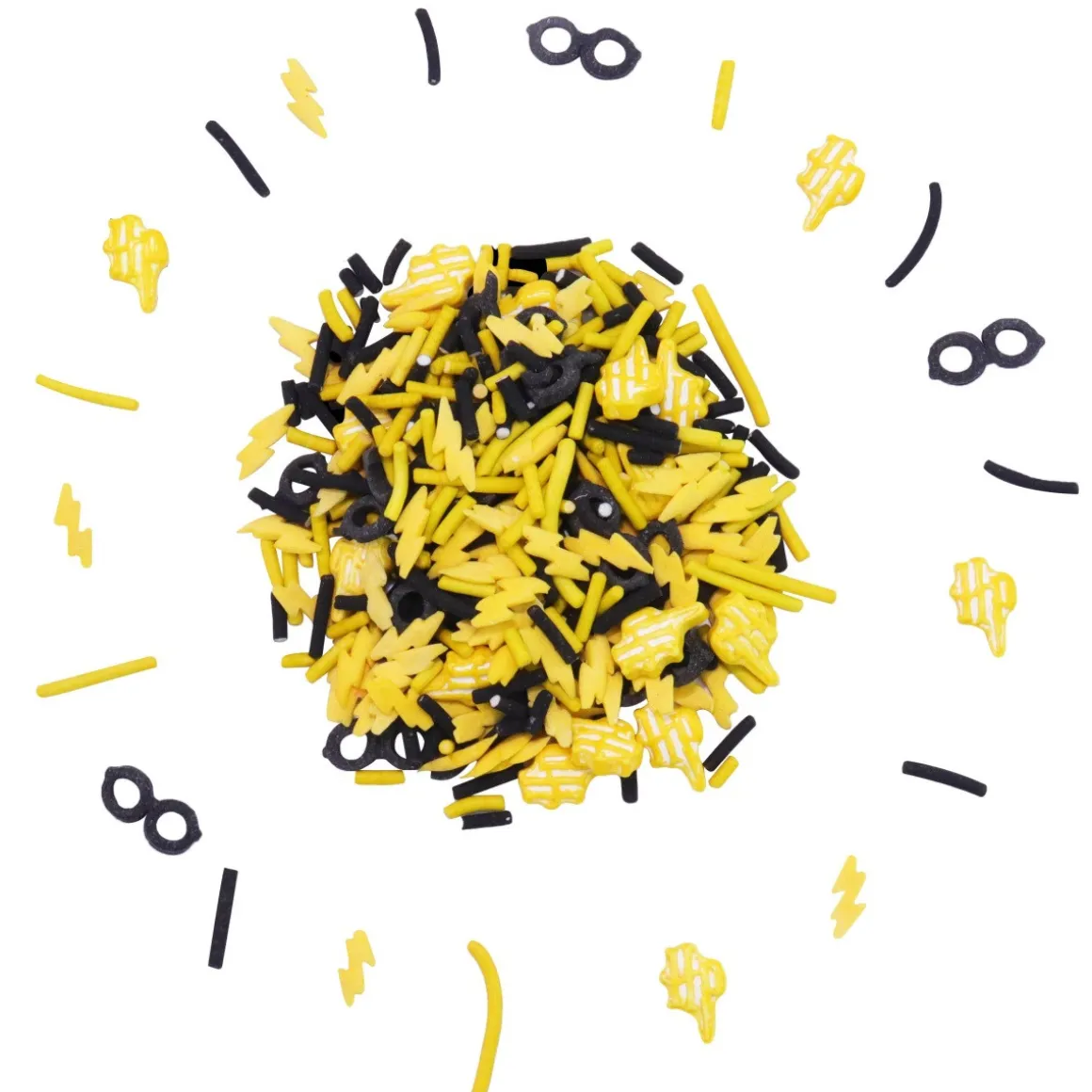 De PME Harry Potter Sprinkles Mix 60g staat helemaal in het teken van Harry Potter. De sprinkles hebben een gele en zwarte kleur in verschillende vormen. Uiteraard zit de bekende bril van Harry in de mix, maar ook de bliksem litteken en de HP initialen ziijn in deze sprinkle mix te vinden. Perfect om je Harry Potter feestje compleet te maken. Strooi deze eetbare strooisels bijvoorbeeld over zelfgemaakte cupcakes, taarten of desserts.