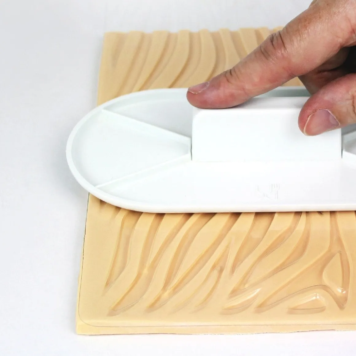 Met deze impression mat kunt u een heel mooi zebra design krijgen. U kunt beide zijdes van de mat gebruiken. De ene kant zorgt voor een mooi diepliggend reliëf. Met de andere kant creëer je een design waarbij het reliëf bovenop de fondant komt. Je kan deze mat gebruiken voor fondant, maar ook voor marsepein, modelling paste of gum paste. De afmeting van deze mat is 15 x 30.5 cm.