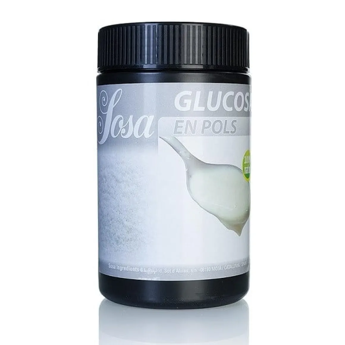 Glucosepoeder is gedehydrateerde glucosestroop. Het voorkomt herkristallisatie van suiker in jellybeans en snoep. Bovendien geeft het elasticiteit aan een product en houdt het zoete bereidingen zoals ganaches, gebak en truffels zacht. Je kunt 75g glucose poeder per 100g vloeibare glucose vervangen.