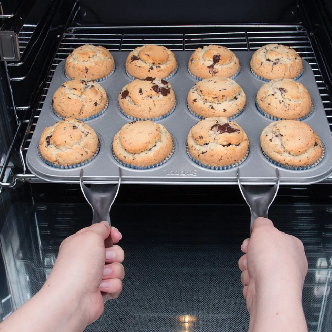 De Städter Bakvorm Lifter 2st. is ideaal om hete bakvormen of bakplaten uit de oven te halen of op te tillen. Een perfect alternatief voor ovenhandschoenen, vooral bij vormen die moelijk aan te pakken zijn. Je hoeft enkel de tangen aan de zijkant van de bakvorm of plaat te klikken.