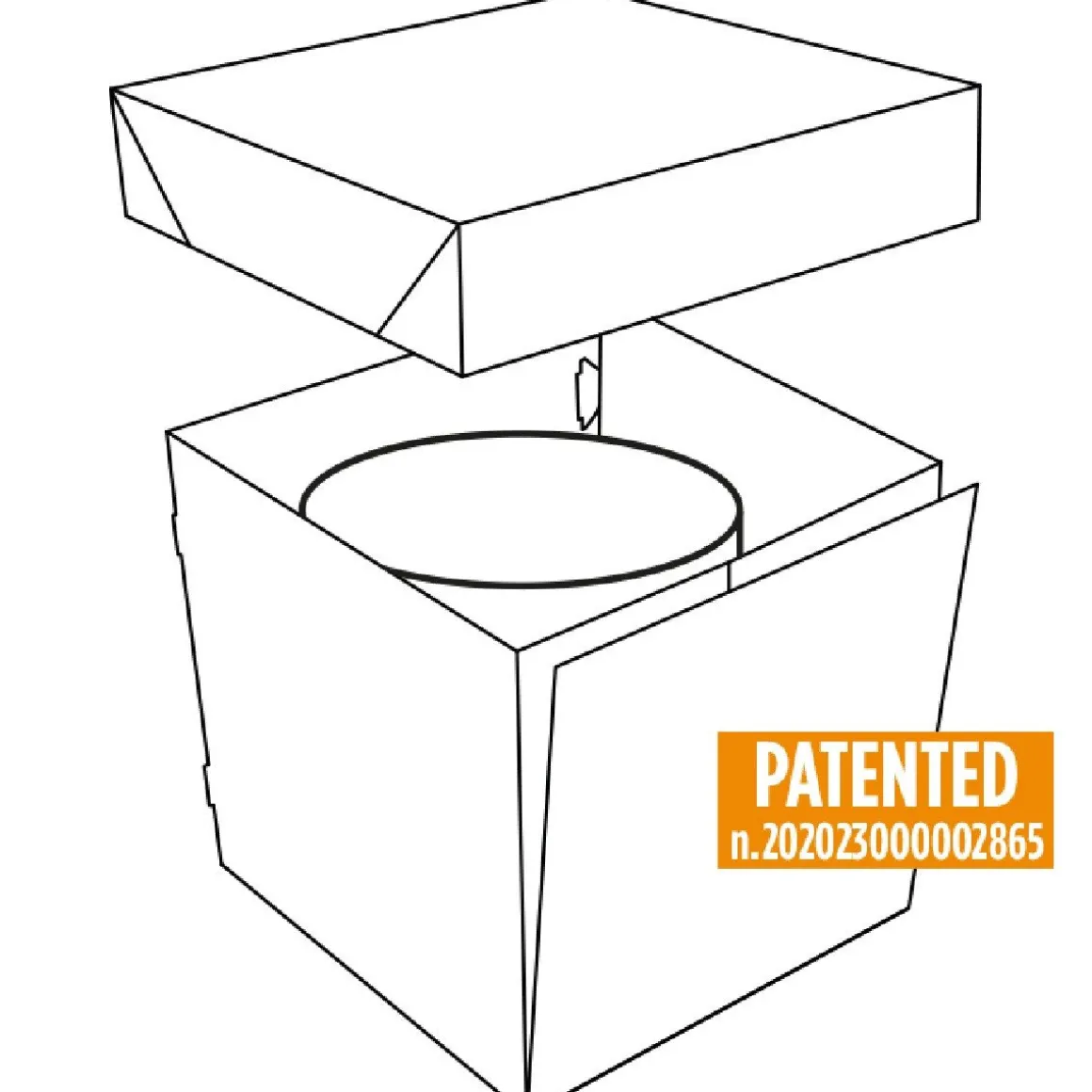 Deze Taartdoos 30,5×30,5x25cm is gemaakt om eenvoudig een taart in en uit de doos te halen. Dit komt door de innoverende opening. Deze bevindt zich aan de voorkant. Deze flap valt open wanneer er geen deksel op zit. Hierdoor kan de taart zonder te beschadigen erin geplaatst of eruit gehaald worden.