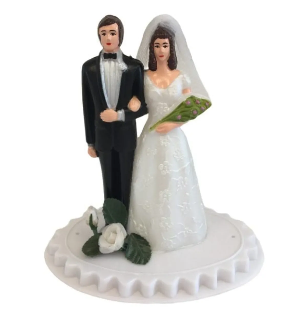 Eenvoudig klassiek bruidspaar van kunststof op voetje.